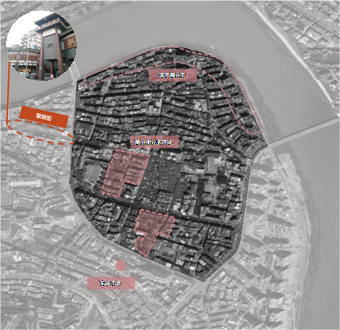 城市中心的历史文化街区,是由具有特色的城市布局、街道结构、传统建筑群以及与之配套的公共设施、园林绿化等构成,是体现城市地方文化特色的物质空间。它是历史文化的长期沉淀,以具体的物质空间形态向人们表达该历史街区的文化内涵。所以城市空间环境中,具有某些特写的历史遗存等物质存在,也同时有更为广阔的时空内容。城市历史文化街区是城市的自然地理、社会经济、建筑技术和历史文化四大要素的综合反映。