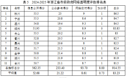 浙江省市级政府网络透明度评对象为:杭州市、宁波市、温州市、嘉兴市、湖州市、绍兴市、金华市、衢州市、舟山市、台州市、丽水市,共11个政府主体。