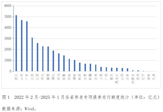 区域布局差异。养老地方专项债券发行规模前五的省份依次是:浙江省(5171.02亿元)、山东省(4726.25亿元)、广东省(4621.17亿元)、江苏省(3098.33亿元)、江西省(2599.63亿元),大多是人口大省。表面上,养老地方专项债券的发行规模主要以人口技术为准。但实际上,2024年我国65岁及以上人口数量前五的省份依次是山东省(1857.7万人)、江苏省(1656.9万人)、四川省(1626.8万人)、河南省(1333.0万人)、河北省(1264.0万人),对比可知,我国各省的实际老龄化情况与养老专项债券的发行情况存在错位情况,并不完全吻合。