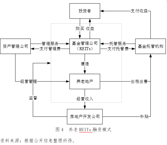 一是优化收益分配机制,稳定融资收益。为解决现金流生成不足、派息不稳定等问题,在“投资者—基金管理公司—养老地产经营收入”这条链子上,建立起投资者分级分配模式:按养老地产经营收入绝对值分配,并设定分段分比超额累进制分配规则分配给基金管理公司。通过固定比例基础收益+超额累进制的管理模式平衡项目成本收益、稳定基金投资人回报。二是强化资产管理能力,提升资产运营质量。围绕“资产管理公司—养老地产经营管理”这个流程来解决定制化程度不同的社区嵌入式以及CCRC模式的养老地产不同运营管理需求,将专业化的养老运营机构引入作为资产管理方,通过专业的运营提升养老地产的入住率和服务收益,提高资金的现金流,从根本上缓解融资侧回款的资金压力。三是完善退出机制,畅通融资资金闭环。针对较长的运营周期以及相对滞后且缺乏可行性的退出机制,一方面沿着“养老地产—出租出售”的路径,推动基金管理公司联合托管机构探索建立REITs份额做市商机制,提升二级市场流动;另一方面,规范产权分割及土地性质变更手续,打通资产出售通道,缩短回笼资金的时间,降低长期内对融资的资金依赖。